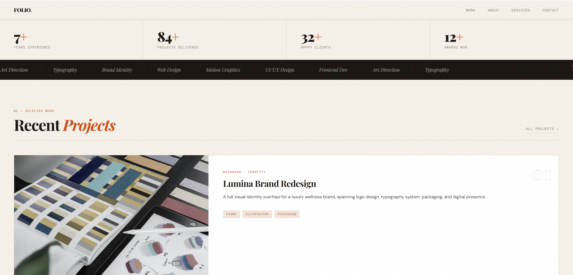 FOLIO is a premium single-file portfolio template built for designers, developers & creatives who want to look professional without the complexity.